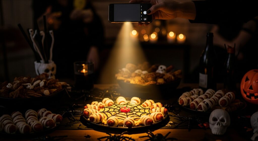 - 小物でストーリーを: 皿の端にハロウィンの小物を添え、写真全体に「パーティーの物語」を感じさせることで、SNSでのエンゲージメント率を高める。