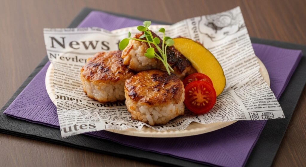 紙皿の下に、黒または深い紫のペーパーナプキン(100均で入手可)を敷きます。 - 「英字新聞風クッキングシート」:
