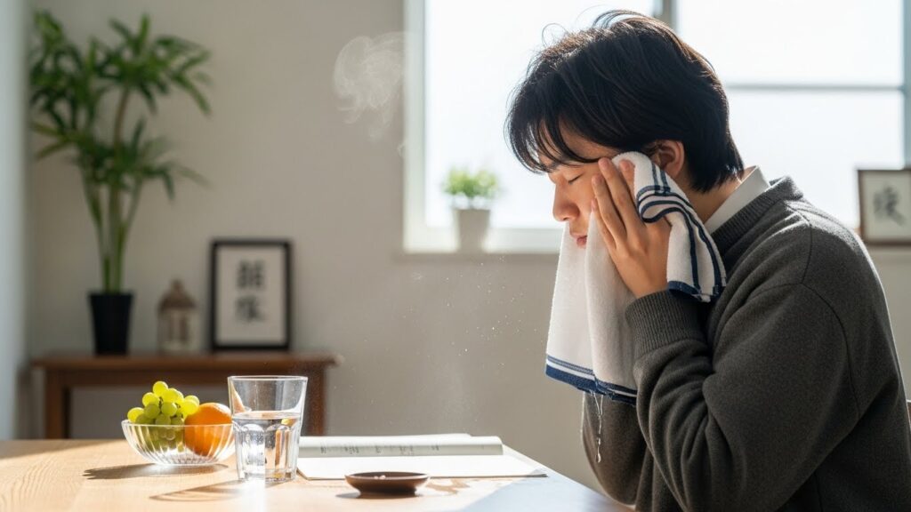 - 中衝(中指の爪の生え際、親指側): 眠気を払い、意識をはっきりさせるツボです。強くつまむように押すと、思考の霧が晴れます。