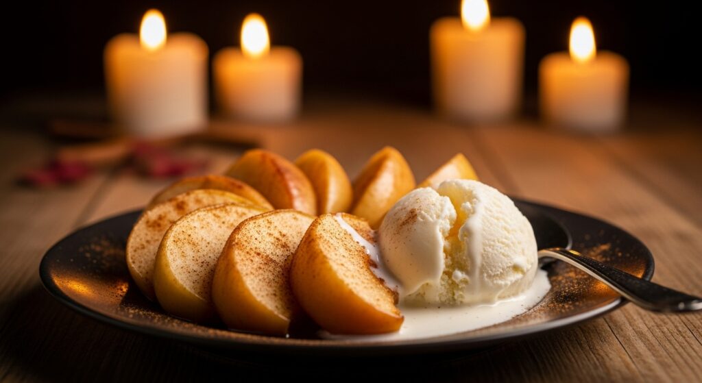 温かくてやさしい甘さ。バニラアイスを添えるとカフェ風スイーツに。