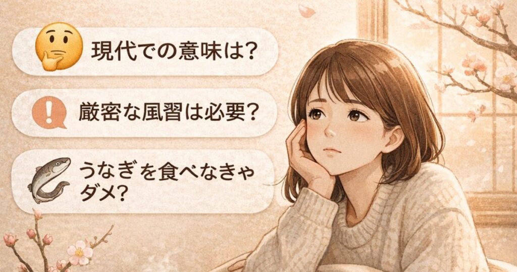 多くの人々が「冬の土用の丑の日」に対して抱く疑問・悩みは、主に以下の3点に集約されます。