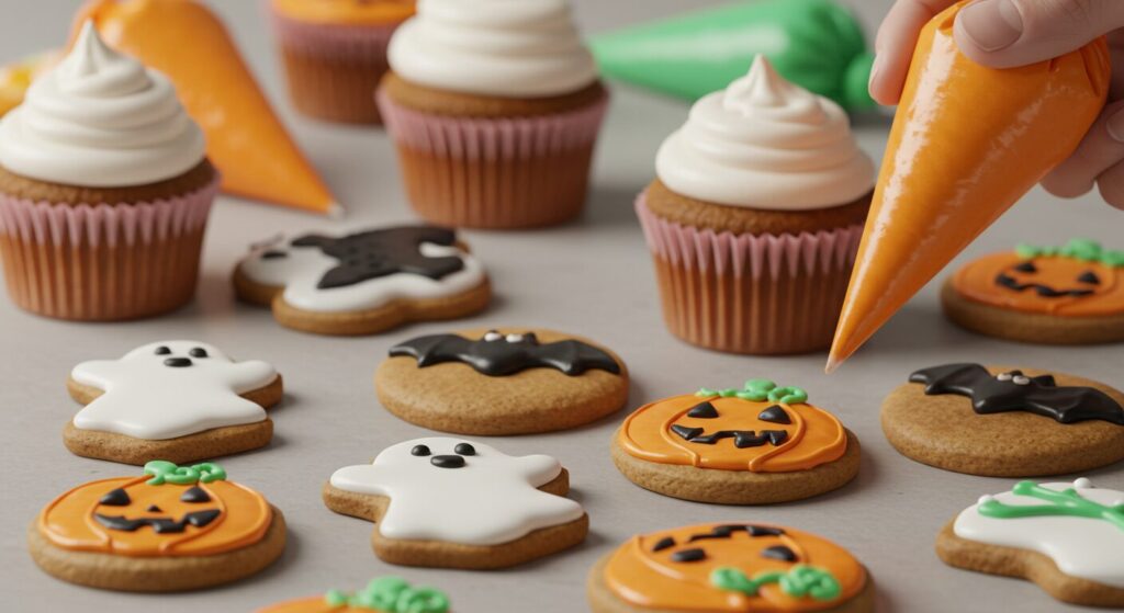 例えば、クッキーをハロウィンカラーのアイシングでデコレーションすれば、