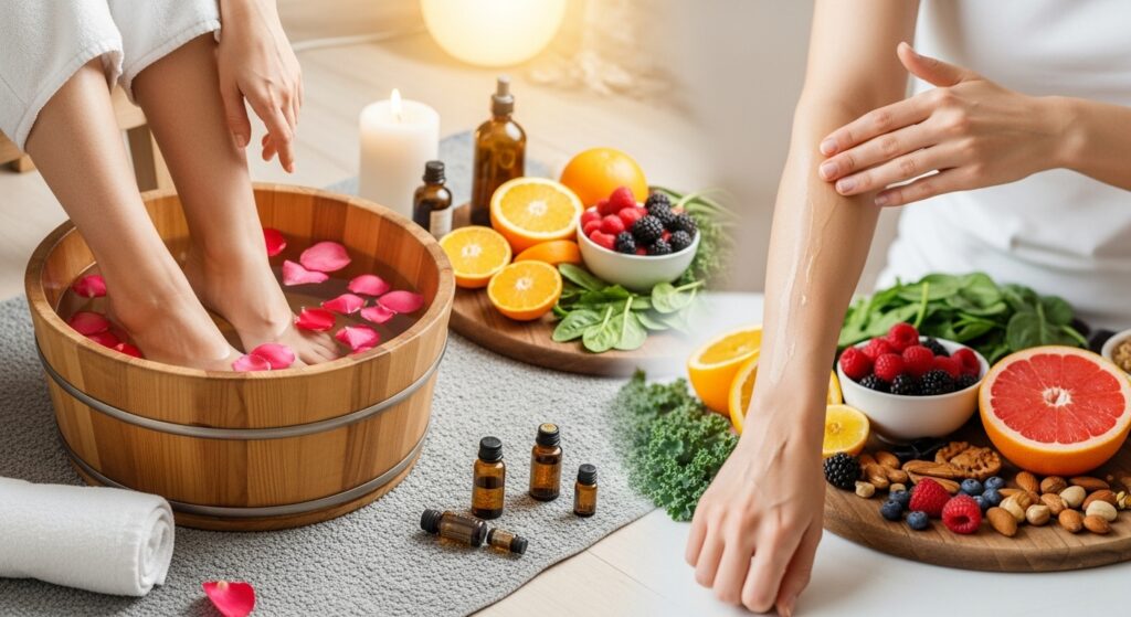 また、冷たい飲み物を避け、ハーブティーや白湯を取り入れるだけでも、体の内側から巡りが良くなります。寝室環境も大切で、加湿器やナイトクリームを活用し、乾燥しにくい空間を整えることで、翌朝の肌のしっとり感が全く違ってきます。