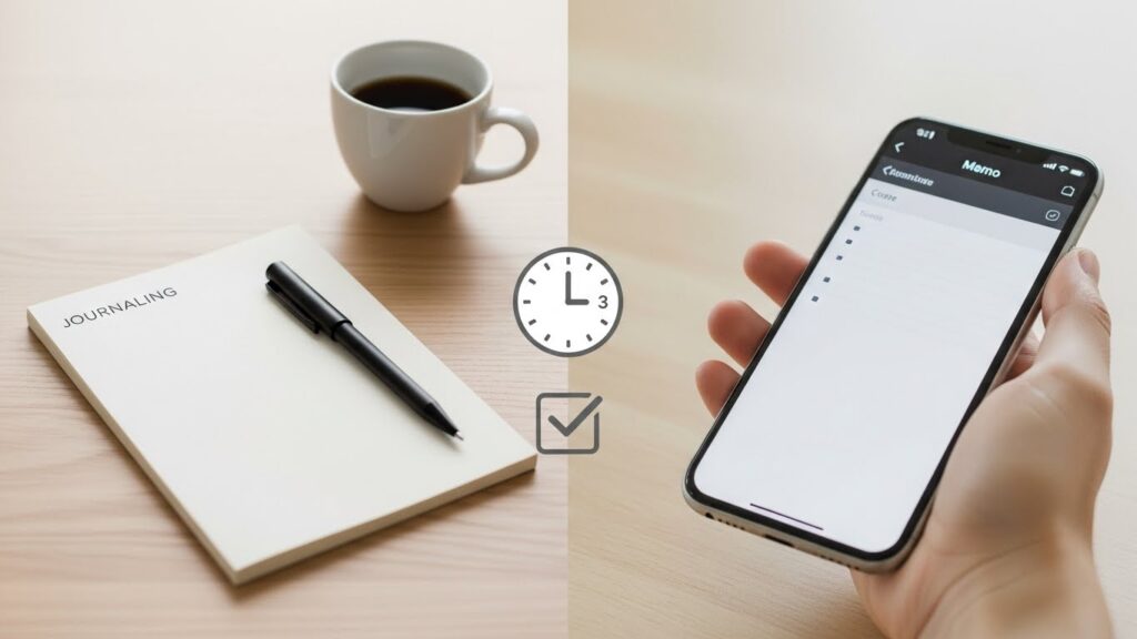 Q1:(ツールの悩み)専用ノートは必要?スマホアプリ vs 紙ノート、それぞれのメリットと使い分け