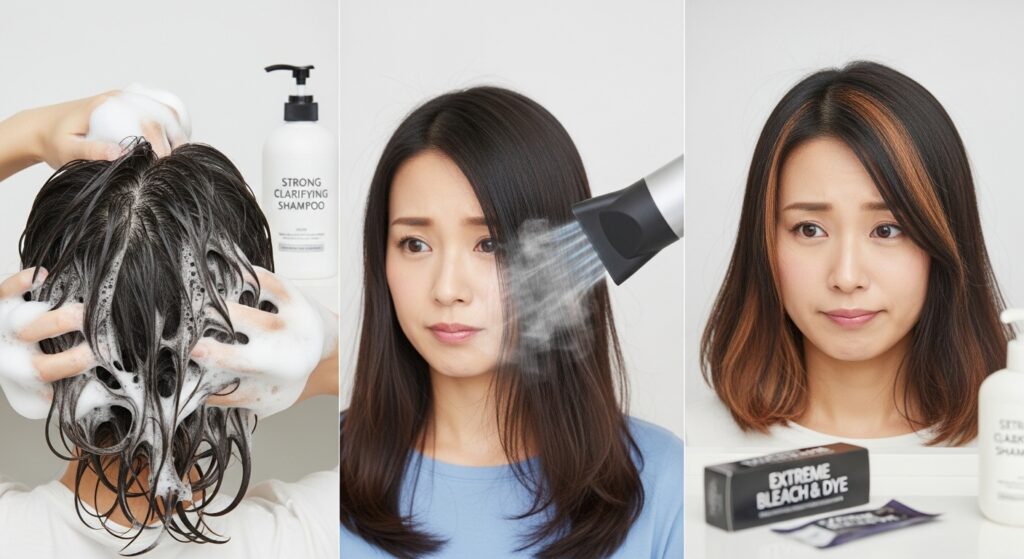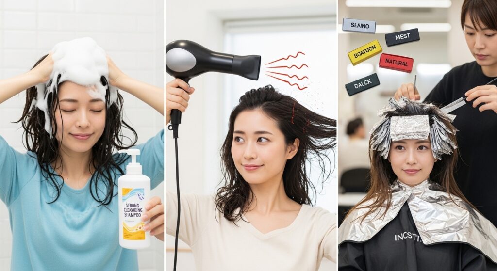よくあるNGケア例とその落とし穴(強洗浄シャンプー・高温ドライヤー・過度なカラー)