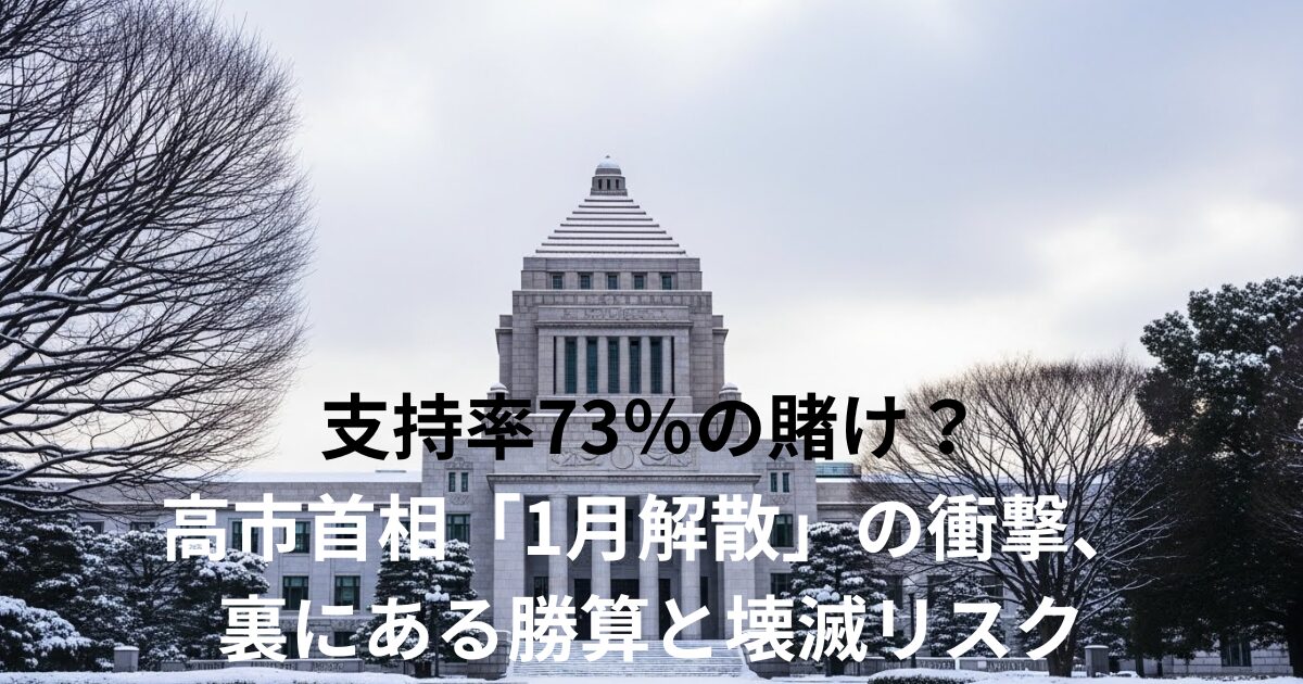 内閣支持率73%という異例の「追い風」を背に受けながら、足元の自民党支持率はわずか30%。この絶望的なまでの「温度差」を抱えたまま、なぜ彼女は今、あえて政治生命をかけた大博打に出るのか?